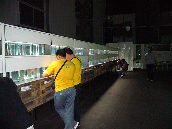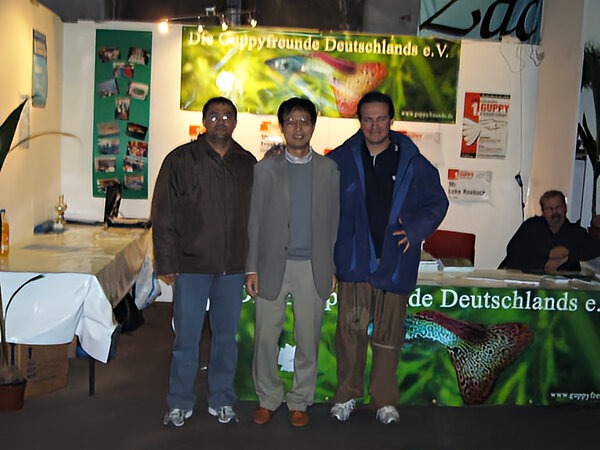 ドイツのデュースブルクで第1回インターナショナル・グッピー・コンテスト(2005年9月30日から10月3日まで)にご縁があり参加しました。日本からはわたくしと岩崎さん(所沢熱帯)、石間さん(群馬大学)が参加致しました。世界最大規模のグッピーコンテスト(当時)という事で,お預かりしたグッピーと共にスーツケース2個を引きながらドイツへ向かいました。わたくしは大阪発だったので単独行動で不安一杯でしたが・・・・