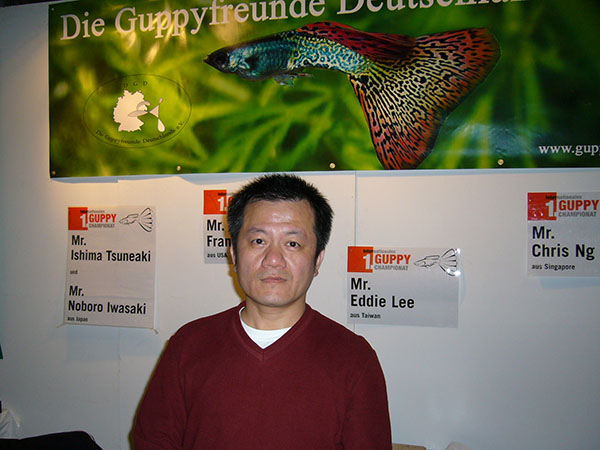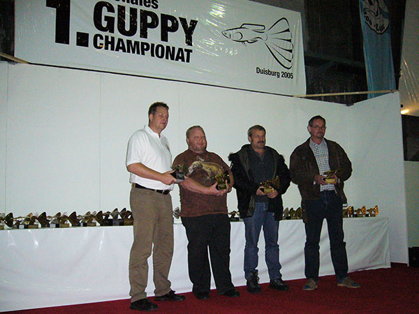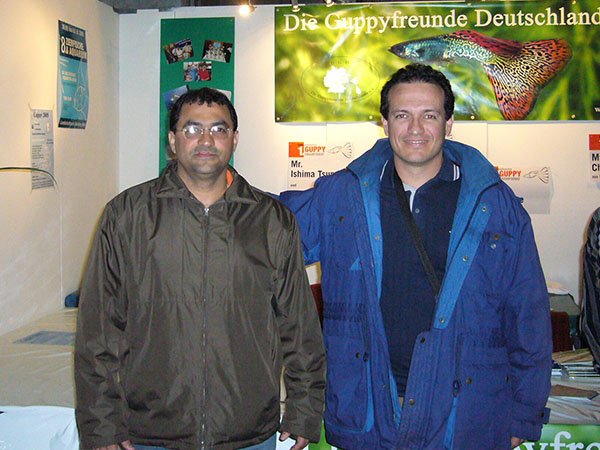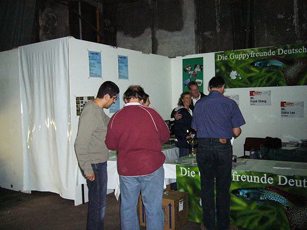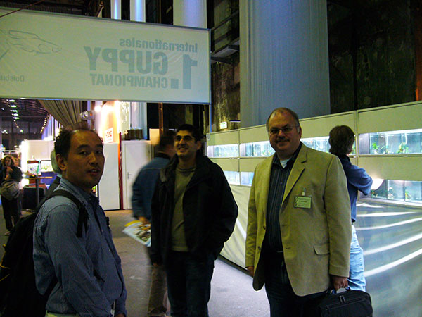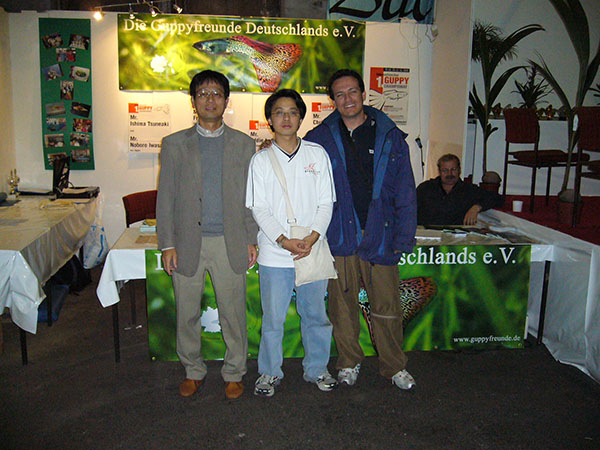 ドイツのデュースブルクで第1回インターナショナル・グッピー・コンテスト(2005年9月30日から10月3日まで)にご縁があり参加しました。日本からはわたくしと岩崎さん(所沢熱帯)、石間さん(群馬大学)が参加致しました。世界最大規模のグッピーコンテスト(当時)という事で,お預かりしたグッピーと共にスーツケース2個を引きながらドイツへ向かいました。わたくしは大阪発だったので単独行動で不安一杯でしたが・・・・