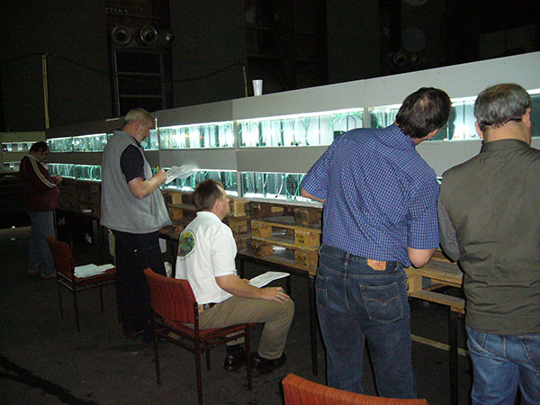 「ドイツのデュースベルクで開催された第1回国際グッピー選手権では、数百匹の見事なグッピーが最近展示されました。このイベントは英国のクラブシーンでは見られなかった規模で、3万人以上のライブベアラー愛好家の来場が見込まれ、5,580平方メートル(60,000平方フィート)を超える会場で、多数のトレードスタンドが設置されました。高額賞金のない英国の魚類ショーとは異なり、このイベントで獲得できる賞金はかなり高額で、最優秀賞は 3,421 ポンドの賞金を獲得し、各テールクラスの優勝者はそれぞれ 684 ポンドを持ち帰りました。ドイツのデュースベルクで開催されたこのイベントには、3万人以上の魚類飼育者が参加しました。来年はこの会場で世界円盤投げ選手権が開催されます。英国ライブベアラー協会のデレク・ジョーダン氏は、他の BLA メンバー数名とともにこの選手権大会に参加し、イベントの規模と質の高さに非常に感銘を受けました。